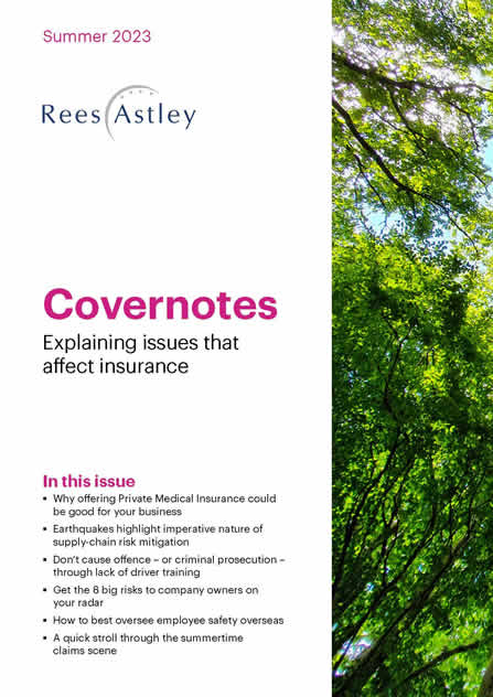 Covernotes is a quarterly magazine intended primarily for our commercial clients to keep them abreast of current insurance and regulatory matters that may be relevant to the running of their businesses.